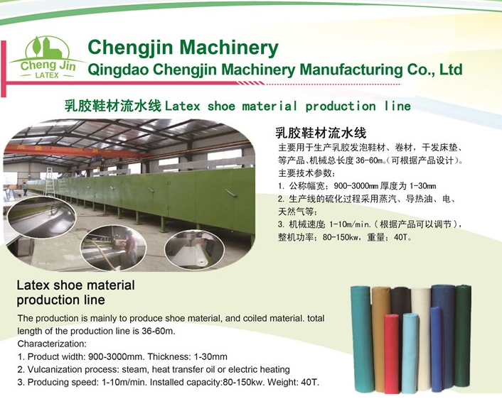 我公司生產的乳膠鞋材機械,乳膠鞋墊機械生產線采用PLC控制系統,具有全自動,連續性,耗能低等特點,生產出來的乳膠鞋材質量高。目前生產線已在全國多個省份開工生產。