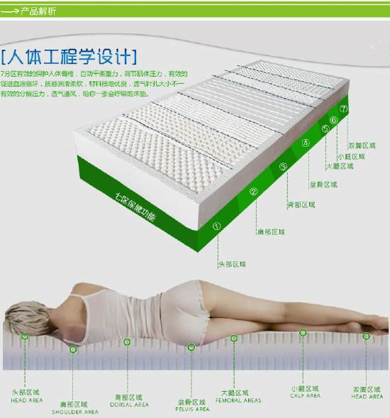 乳膠床墊分區(qū)上面主要是3、5、7。數(shù)字代表的意思是,一張乳膠床墊,分成幾個軟硬程度不同的區(qū)域。之所以要有分區(qū)的概念,是配合人體頭、肩、背、腰、臀、腿、腳七個部位不同著力的要求設(shè)計的,以獲得更好的身體貼合性。更貼合身體的乳膠床墊,能夠在睡眠中提供各個部位恰到好處的支撐,從而達到更好的緩解肌肉緊張的左右,并且讓睡眠更加舒適。所以,現(xiàn)在很多人,尤其是側(cè)睡的人會購買7區(qū)的乳膠床墊。