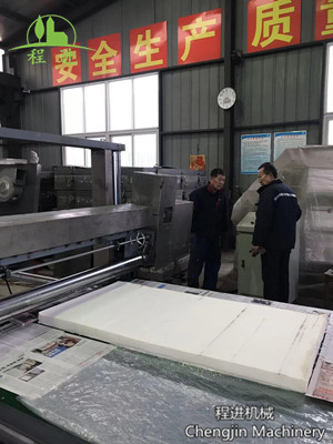 膠被子制作,客戶親自試驗機器,機器可以自動手動兩種方式操作。簡單方便。可以實現(xiàn)一人看機。節(jié)省