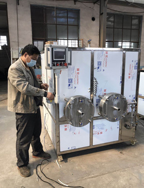 客戶訂購的兩臺全自動乳膠發泡機正在做最后的調試接線工作。此臺乳膠發泡機是自動乳